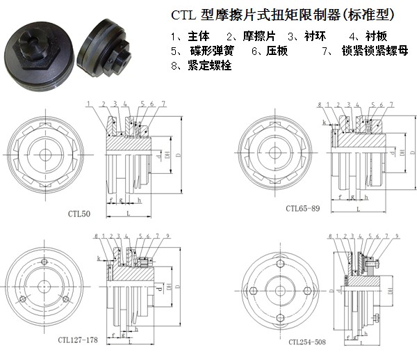 CTL型摩擦片式扭矩限制器(標準型)的基本參數(shù)和主要尺寸